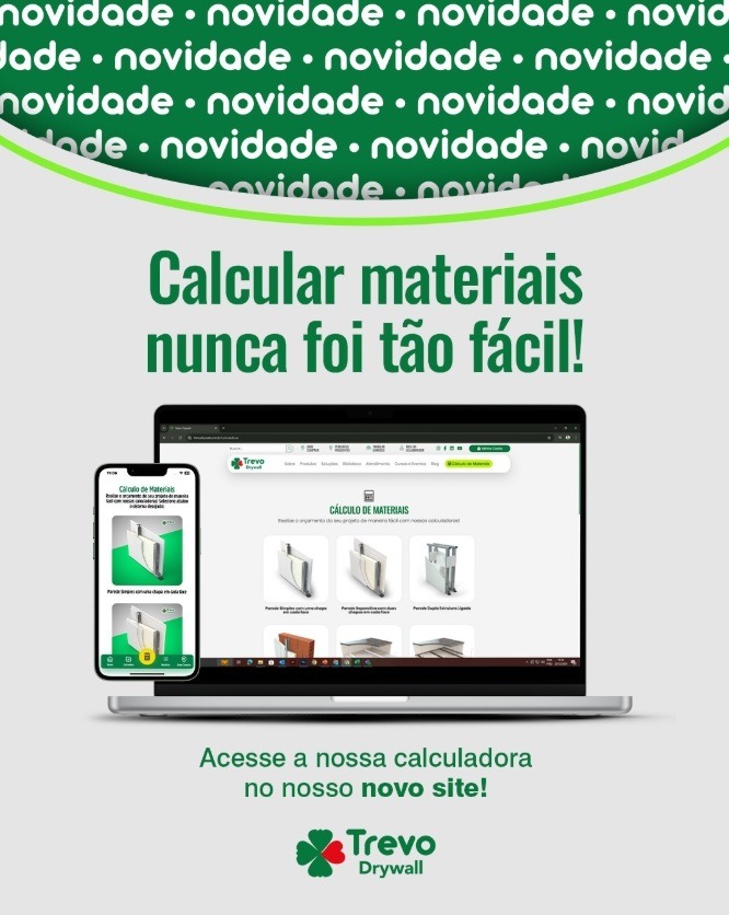 A calculadora de materiais da Trevo Drywall continua sendo uma ferramenta indispensável para instaladores, distribuidores, construtores e arquitetos em todo o país.